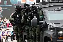 The Lenco BearCat[6][7] is a wheeled SWAT vehicle designed for military and law enforcement use. It is in use by several military forces and law enforcement agencies around the world.