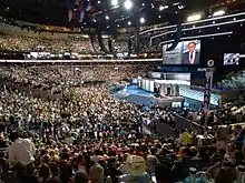 Panetta switched to the Democratic Party in 1971, citing his belief that the Republican Party was moving away from the political center.[19] In 1976, Panetta was elected to the U.S. Congress to represent California's 16th congressional district, unseating incumbent Republican Burt Talcott with 53% of the vote. He would never face another contest nearly that close, and was reelected eight times.[20][21][22]