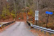 A steel girder and floorbeam system bridge carrying T-337 over Leonard Creek was built in 1914 0.5 miles (0.80 km) west of Beaumont and is 65.9 feet (20.1 m) long. A prestressed box beam or girders bridge carrying State Route 2018 over the creek was built in 1934 and was repaired in 2007. This bridge is 44.0 feet (13.4 m) long and is situated in Monroe Township, Wyoming County.[13] In 1940, a concrete tee beam bridge carrying Pennsylvania Route 309 over Leonard Creek was built in Dallas Township, Luzerne County. It is 32.2 feet (9.8 m) long. A concrete tee beam bridge carrying State Route 2026/Kunkle Road was built across the creek in the same year in Dallas Township and is 37.1 feet (11.3 m) long.[14] A two-span concrete culvert bridge carrying State Route 2002 was constructed across the creek in Monroe Township, Wyoming County in 1969 and is 50.9 feet (15.5 m) long. A two-span concrete culvert bridge carrying T318/Falls Hill Road over Leonard Creek was built 1.2 miles (1.9 km) southeast of Beaumont in 2009 and is 29.9 feet (9.1 m) long.[13]