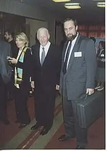 Thor Heyerdahl and Leonid Kolotilo at the Congress of the Russian Geographical Society in Arkhangelsk, 2000