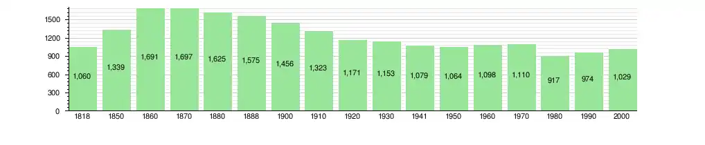 Les Bois has a population (as of December 2020) of 1,246.[8] As of 2008, 9.7% of the population are resident foreign nationals.[9] Over the last 10 years (2000–2010) the population has changed at a rate of 14.7%. Migration accounted for 12.2%, while births and deaths accounted for 3%.[10]