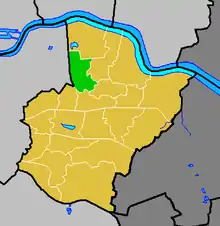 Lesnes Abbey gives its name to one of the London Borough of Bexley's 21 electoral wards. The ruins themselves are in the north of Lesnes Abbey ward. Woolwich Road, the A206 road, cuts through the middle of the ward spanning east to west; the A2041 road spans north to south marking the ward's western boundary. West Heath is located within the ward to the south of Woolwich road. Lesnes Abbey ward is 2.5 km (1.6 mi) long north to south at its longest point, and little under 1.5 km (0.93 mi) at its widest point east to east. The population of the ward at the 2011 census was 11,346.[8]