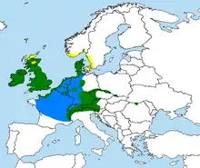 - Map derived from Snow & Perrins Birds of the Western Palearctic and several national bird atlases.