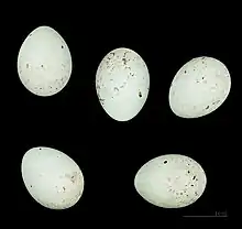 Breeding pairs form in late winter. The breeding territory and several pairs will often nest close together in a loose colony. The cup-shaped nest is built by the female, usually in a shrub or tree. It is made of twigs and plant stems, with an inner layer of roots, grass, moss, leaves, and other vegetation and a lining of feathers, wool, and hair. Two to seven eggs are laid. They are pale bluish or greenish, with reddish or brownish blotches and streaks. The female incubates the eggs for 12–15 days, while being fed by the male. The young birds are fed by both parents and fledge after 9–15 days.