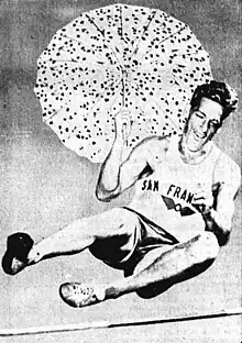 It was, however, as a high-jumper that he achieved his greatest success. He was NCAA (United States collegiate) champion (1941))[5] , 3 times AAU (United States national) champion (1939–41)[6] , and a gold medalist at the World University Games in 1939 (where he also won silver in the javelin and bronze in the pentathlon).[4]