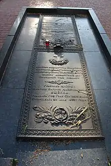 After the war with the French and his return to Russia, Yashvil served as the commander of artillery of the First Western Army, from 1816 until his retirement in 1833. In 1819 he was promoted to General of the Artillery. Prior to that, he took part in suppressing the 1830-31 November Uprising in Poland. After serious health issues he then requested retirement from service in 1833. His last award was the highest Russian honor, the Order of St. Andrew. Lev Yashvil would die three years later in Kiev. The general was buried at the Vydubychi Monastery.[1]