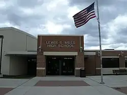 The name eventually decided upon for the school in the contest was "Lewis S. Mills High School", taking its name from Lewis S. Mills, a local educator and author who had managed schools in both Burlington and Harwinton during the 1910s and 1920s. A few weeks after the announcement of the school's naming, a dedication ceremony was held which featured the school's namesake.[2]