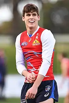 Lewis Young (born 20 December 1998) is a professional Australian rules footballer playing for the Carlton Football Club in the Australian Football League (AFL). He was drafted by the Western Bulldogs with their third selection and forty-ninth overall in the 2016 national draft.[1] He made his debut in the twenty point win against Carlton at Etihad Stadium in round seventeen of the 2017 season. [2]