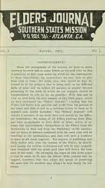 In 1903, under the direction of Ben E. Rich, the LDS Church's Southern States Mission began publishing a monthly periodical called Elders' Journal, which was named after the 1837–38 periodical of the same name.