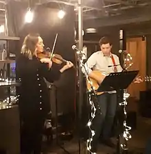 The Express is a side project of cousins Liam Corcoran and former Hey Rosetta! member Kinley Dowling.[5] Beginning in 2010, the duo began as an outlet for the artists to explore their songwriting.[6] During this time, Corcoran developed a different compositional voice while Dowling started songwriting.[6] The group is described as both folk and pop, with their debut self-titled album being heavily acousticー Dowling wrote three tracks while Corcoran wrote the rest.[7] The album explores transitions, honesty, youth, new relationships, and experiences, while Corcoran's acoustic guitar and Dowling's violin and viola (even plucked like a mandolin in her track "Sharpshooter") serve as bedrocks.[6] Cuff the Duke member Dale Murray is featured much in this work, not only producing (with "spontaneity over rigid structure"), but also playing frequently.[7] He is sometimes cited as a core member of the Express in his own right.[8] The self-titled album was described by the Graypoint Owl as "one part Two Hours Traffic catchiness, one part Hey Rosetta! sensitivity and one part Cuff the Duke earthiness", receiving the rating of "Proud Hoot (Really Good) + *swoop*".[8]