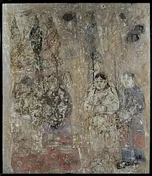 The Tang governor An Lushan launched two invasions into Khitan territory in 751 and 755. After being soundly defeated by the Khitans during the first invasion, An Lushan was successful in the second. An then led a rebellion against the Tang that included Khitan troops in his army. An had a Khitan eunuch named Li Zhuer who worked for him as a teenager but An Lushan used a sword to sever his genitals and he almost died after losing multiple pints of blood. An revived him by smearing ashes on his injury. Li Zhuer was highly trusted by An Lushan, and he and two other men served as his personal attendants. Li Zhuer was approached by conspirators who wanted to kill An when he became ill and started abusing his subordinates. An was hacked to death by Li Zhuer and another conspirator, Yan Zhuang, who was beaten by An before. An screamed "this is a thief of my own household" as he desperately shook his curtains since he could not find his sword to defend himself.[36][37] The An Lushan Rebellion marked the beginning of the end of the Tang dynasty.[38]