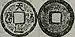 Liao dynasty coins (like some contemporary Song dynasty coins) can be read top-right-bottom-left (clockwise), but unlike the Song's coinage never appeared top-bottom-right-left. Liao dynasty era coins have appeared in both Chinese and Khitan scripts.[3][4] The coins in Khitan script do tend to have different character orders,[5] Though these coins weren't meant for circulation.[6]