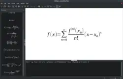 | Math | An application designed for creating and editing mathematical formulae. The application uses a variant of XML for creating formulas, as defined in the OpenDocument specification. These formulas can be incorporated into other documents in the LibreOffice suite, such as those created by Writer or Calc, by embedding the formulas into the document.[26] | |