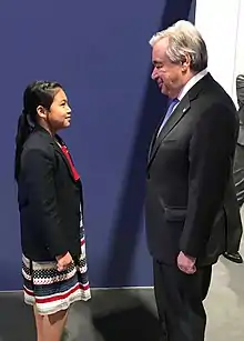 Licypriya met UN Secretary-General António Guterres during COP25 and submitted a memorandum "on behalf of the children of the world." The memorandum stated that she wants to create a better place for all children of the world. She was praised by Guterres. Greta Thunberg and several other global leaders participated during the event. [29]