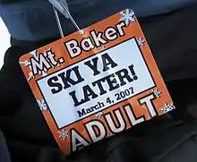 A lift ticket or lift pass is an identifier usually attached to a skier's or snowboarder's outerwear that indicates they have paid and can ride on the ski lift(s) that transport people and equipment up or down a mountain.[1]