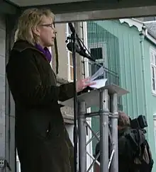 ![]() Lilja Mósesdóttir speaking at Austurvöllur in 2009. | |