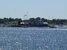 Lime Rock is an island located 600 feet offshore in Newport Harbor, in Narragansett Bay, in the U.S. state of Rhode Island. It was made famous by Ida Lewis, the lighthouse keeper of the tower built on it in 1854 which is now known as Ida Lewis Rock Light.[1] In 1927 the island was sold to a Yacht Club and was connected to Aquidneck Island by a small causeway. A steel tower light was placed in front of the building, which remained an active light until 1963.[2]
