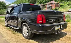 The Lincoln Blackwood is a luxury pickup truck that was marketed by the Lincoln division of Ford Motor Company for the 2002 model year. The first pickup truck marketed by Lincoln, the Blackwood was derived from the Ford F-150 SuperCrew and the Lincoln Navigator. Drawing its name from its simulated black woodgrain cargo box, the Blackwood was offered solely with a black-painted exterior.