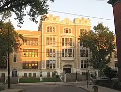 The original Lincoln High School opened in 1913, with an inaugural student body of 300 on a site acquired from the Hasbrouck Institute, a private school. The city's second public high school, it was intended to address the growth in enrollment at present-day William L. Dickinson High School.[9] In January 1916, the school graduated its first class of 32 students. In 1934, the school had an enrollment of 5,000 students, making it the second largest in the state.[10]