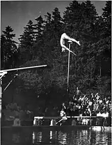 In 1941, Seattle pioneer descendant Kenneth Colman donated Lincoln Park's Colman Pool to the city of Seattle as a memorial to his father Laurence. The saltwater Colman Pool was built over the site of the tide-fed swimming pool that the city had constructed in 1925.[11] The lobby of the pool's building has a mural by Ernest Norling.[12] The pool was integrated in 1944 after demonstrations by African American students from the University of Washington.[13]