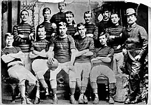 The club played in navy and maroon hooped shirts and white shorts.[24]