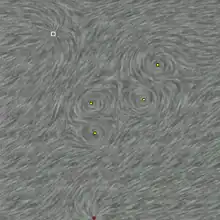 Note that domain does not have to be a 2D domain: the method is applicable to higher dimensional domains using multidimensional noise fields. However, the visualization of the higher-dimensional LIC texture is problematic; one way is to use interactive exploration with 2D slices that are manually positioned and rotated. The domain does not have to be flat either; the LIC texture can be computed also for arbitrarily shaped 2D surfaces in 3D space.[13]