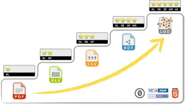 - 4 stars: data follows W3C standards, like using RDF and employing URIs.
