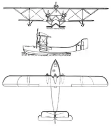 Its hull had two steps, one under the wing trailing edge and the second further aft. The underside had a rounded, rather than V, section and was wider than its upper part. The pilot was positioned in an open cockpit just ahead of the leading edge of the wing and a "luxurious" passenger cabin, accommodating twelve, was accessed via a hatch in the nose. On each side a stabilizing float was mounted below the lower wing on extensions of the outer interplane struts, strengthened with another, inward pair.[2]