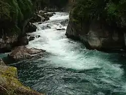 The Liquiñe River is a river in the Andes of Los Ríos Region, Chile. The river is most known for the many hotsprings the upwell at its middle reaches where the town of Liquiñe is currently placed.