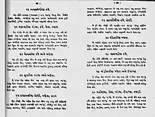 Every Brahmin Gotra is further sub-divided into several divisions Pravaras.[24] Translated literally from Sanskrit, the term means ‘most excellent’.[24] A Pravara represents the lineage of individuals from a particular Gotra who, according to Hindu literature, had ‘achieved greatness’.[24] These individuals were generally also saints or sages, often direct descendants of the Saptarishi, but were sometimes notable kings or princes of the Vedic Age such as Harita.[24] According to Brahminical belief, an individual is said to ‘achieve greatness’ if they consistently, throughout their lifetime, performed ‘noble deeds’, exhibited ‘Brahminical virtues’ and upheld the repute of their root ancestor.[25] There is no fixed number of Pravaras in every Brahmin Gotra, the number of sub-divisions within a Gotra depends on the number of individuals from the Gotra that Hindu texts deemed to have ‘achieved greatness’.[25] For example, the Bharadwaja Gotra has two Pravaras, Angirasa and Bharhaspatya, which represent the lineages of two revered Vedic sages who were descended from Bharadwaja.[26] Finally, as stated in the Rigveda, unlike a Gotra, a Pravara plays no specific role by itself in Brahminical life but is a ceremonial part of the identification of an individual’s lineage.[24]