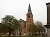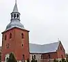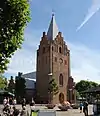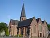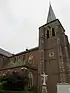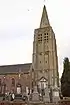 | Wavre | Saint-Jean-Baptiste Church (FR)[12] | Gothic 16th century | nave and base of the tower of red stone, tower of red brick with narrow layers of white stone | ![]() |