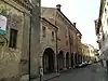- "Facciata Brickwall della chiesa romana gotica del XV secolo dedicata a San Francesco a Cotignola in provincia di Ravenna, nella campagna dell'Emilia Romagna in Italia". 123RF.