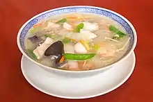 | Hot and sour soup | ![]() | 酸辣湯 | 酸辣汤 | suānlàtāng | |