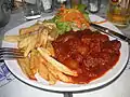 Sausage made from pork or lamb, typically flavored with orange zest or leeks. |