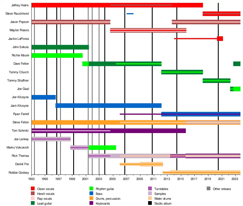 | Image | Stage Name | Real Name | Years active | Instruments | Other Bands |