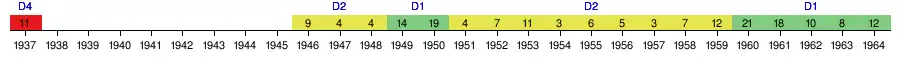 | 1993–94 | 8 | 30 | 11 | 7 | 12 | 37 | 11 | 29 | QF | - | ||||