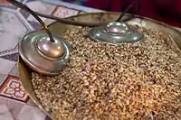 | Ghanta or Gan | घण्टी | Ceremonial bells.[29] Hindu temples generally have one metal bell hanging at the entrance and devotees ring the bell while entering the temple. | ![]() Big ghanta and little ghanta outside a temple | ||