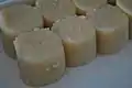 Uncooked flat, square or bar-shaped chocolate snack/dessert, similar to a fudgey chocolate brownie but with alternating lighter and darker areas |