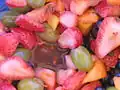 Whole or pieces of fruit in sugar syrup. Whole fruits are cooked in water with sugar and spices |
