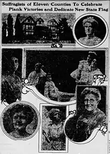 "Suffragists of Eleven Counties to Celebrate Plank Victories and Dedicate New State Flag" June 1, 1916 (cropped) - Sarah Pugh.[42]