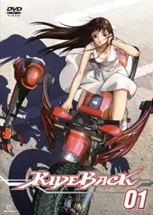 Rideback is a Japanese anime television series based on Tetsurō Kasahara's manga series of the same name. The anime was announced in April 2007.[1] The twelve-episode series was animated by Madhouse and directed by Atsushi Takahashi.[2][3] It was broadcast on Chiba TV, TV Saitama, tvk, KBS Kyoto, Sun TV, Tokyo MX and AT-X from January 12 to March 30, 2009.[5][lower-alpha 1] The opening theme is "Rideback", performed by Mell, and the ending theme is "Kioku" (記憶, lit. "Memory") by Younha feat. Goku.[3][6]