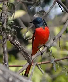The estrildid finches are small passerine birds of the Old World tropics and Australasia. They are gregarious and often colonial seed eaters with short thick but pointed bills. They are all similar in structure and habits, but have wide variation in plumage colours and patterns.