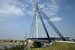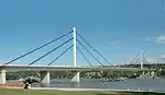![]() | 2 | Saint Irinej Bridge | Мост св. Иринеја | 192 m (630 ft) | 297 m (974 ft) | Cable-stayed Steel box girder deck, concrete pylons 35+192+35 | Footbridge Sava | 1993 | Sremska Mitrovica 44°57′57.6″N 19°36′4.7″E | Srem | [S 16] [9] |