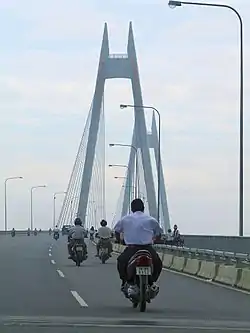 ![]() | 4 | Thuận Phước Bridge | Cầu Thuận Phước | 405 m (1,329 ft) | 1,855 m (6,086 ft) | Suspension Steel box girder deck, concrete pylons 125+405+125 | Nguyễn Tất Thành Hàn River | 2009 | Da Nang 16°05′42.4″N 108°13′14.4″E | South Central Coast | [T 3] [S 8] [21] |