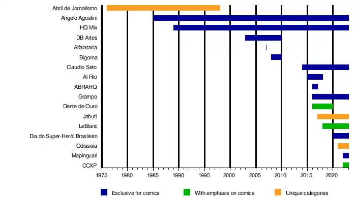 - Prêmio Abril de Jornalismo, category "Comics" — first awarded in 1976; ceased in 1998.[3]
