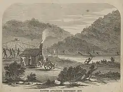 A group of Indigenous Australians attacking a shepherds hut - 1845: Darkey Flat Massacre