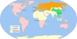From the novel Nineteen Eighty-Four. Oceania in pink
