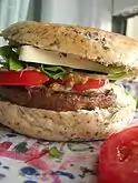 | Veggie burger | ![]() | United States, Canada, Mexico | Veggie burger, garden burger, or tofu burger uses a meat analogue, a meat substitute such as tofu, textured vegetable protein, seitan (wheat gluten), Quorn, beans, grains or an assortment of vegetables, which are ground up and formed into patties. |