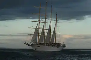 | Wind Star[8] | ![]() | 1986 | S | SNACH | 440 ft (130 m) | 52.1 ft (15.9 m) | 4-mast motor-sailer | Steel | 21,500 sq ft (2,000 m2) | 5,350 GRT | Cruise ship | |
