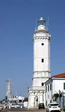 | Punta Tagliamento Lighthouse | ![]() | 1913 | San Michele al Tagliamento 45°38′10.6″N 13°05′51.3″E | Fl (3) W 10s. | 22 metres (72 ft) | 11572 | E2518 | 15 |